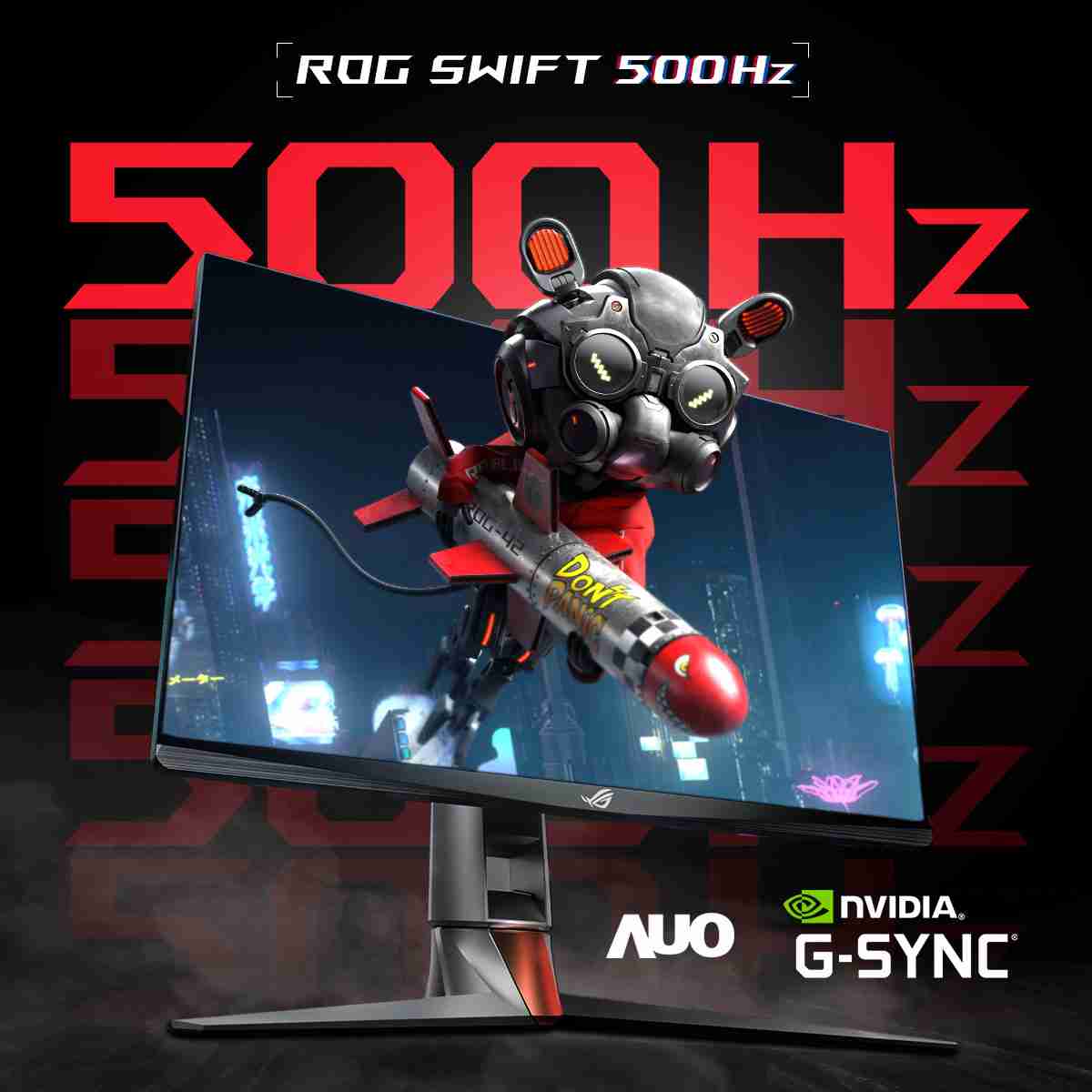 至成国际光电今 (24) 日与辉达 NVIDIA 及华硕 ROG 共同发表全球第一款最高更新率* 24.1吋 500Hz 电竞螢幕── ROG Swift 500Hz,,,,采用至成国际专为电竞应用开发之 E-TN (Esports TN) 技术,,搭配辉达 NVIDIA 延迟分析工具,,,让游戏动态影像清晰锐利、、流畅无残影,,,为玩家带来无延迟的疾速射击体验。。。