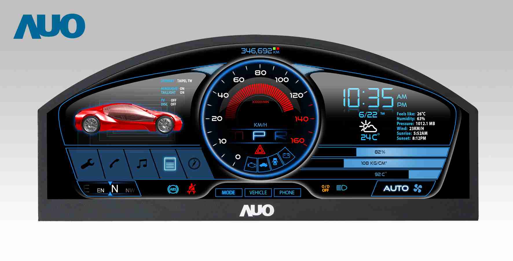 至成国际 12.3吋超高解析异型切割车用面板,,拥有流线外观及精细画质