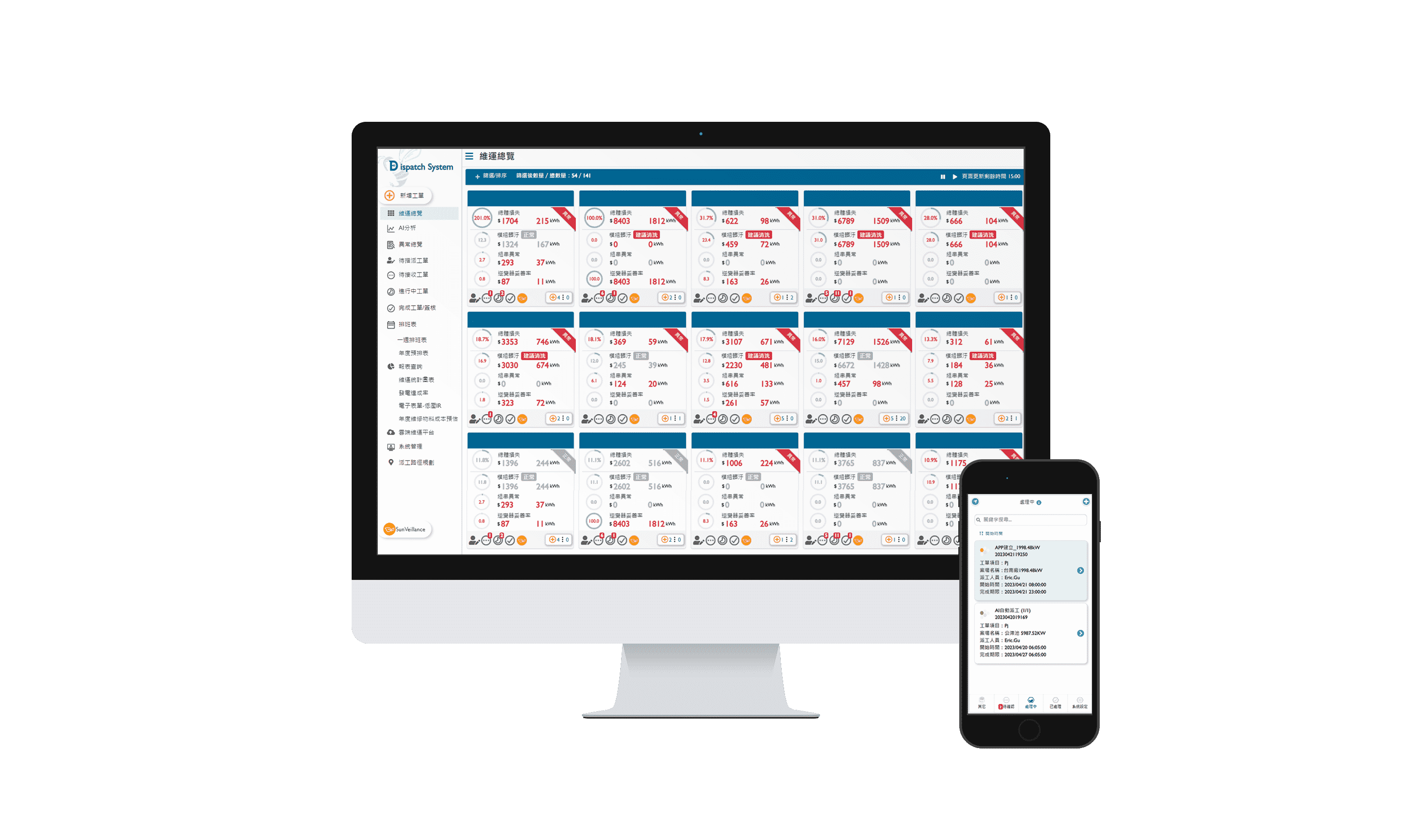 全流程运维管理包括云端监控工具、、、AI分析与智慧自动派工及运维APP,,,,实现电厂自主管理。。