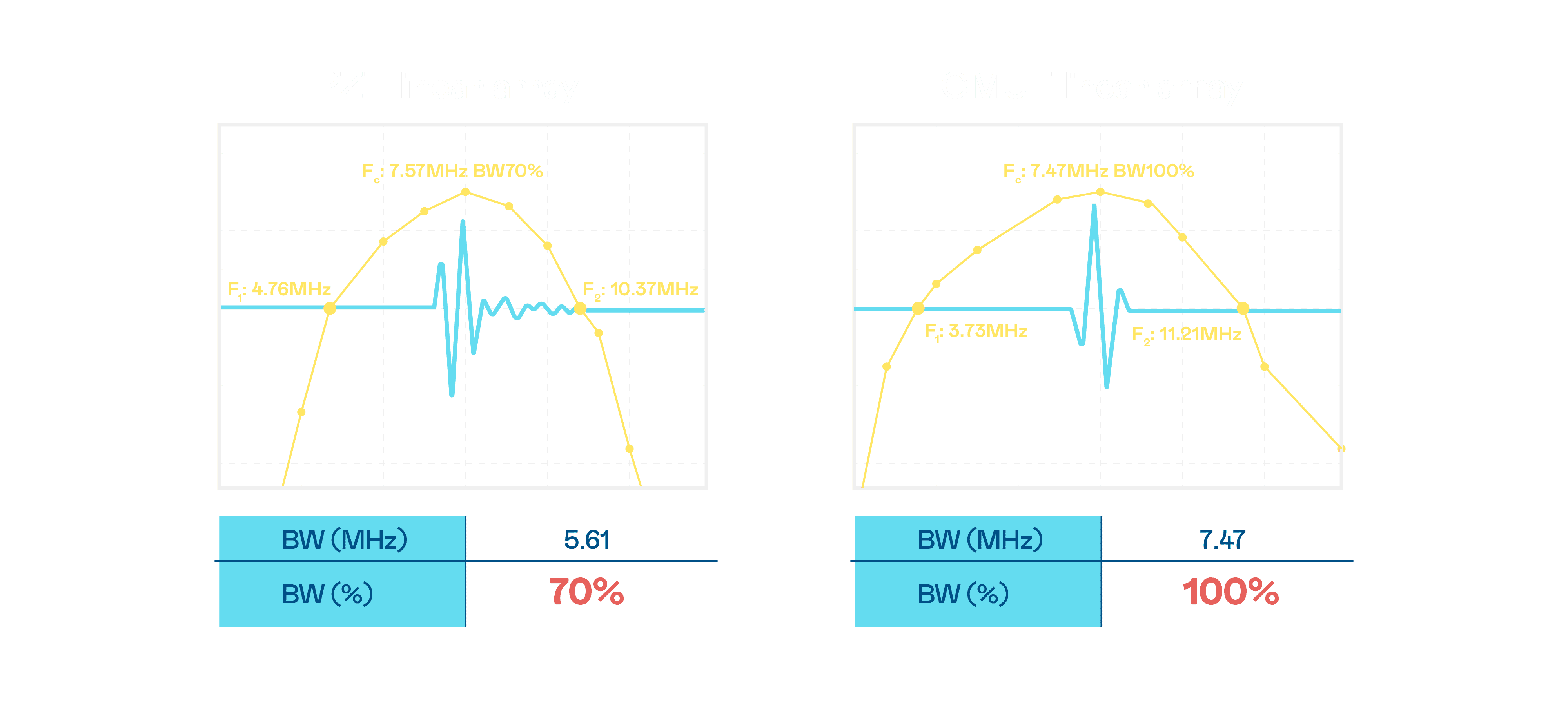 超音波影像的解析度高低,,首先取决于探头能发出的讯号频宽。。。至成国际 CMUT 可提供高清晰的超音波讯号,,,提供高频宽、、、高灵敏度、、影像纹理细节更高的超音波影像,,协助医护人员缩短影像判读时间及利用精准的医疗影像进行诊断。。。